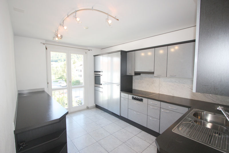 Wohnen-Essen-Küche mit grossem Balkon, Cheminée, Marmorboden, zeitlose Küchenanlage, Tages-WC-Lavabo, Bad mit Whirlwanne/Doppellavabos/WC/Fenster, 3 Schlafzimmer mit Parkett. Wohnzimmer mit Überhöhe zur obliegenden Galerie.