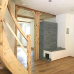 EG: Eingangsbereich, Wohnen-Essen-Kochen mit Specksteinofen holzbefeuert, Treppenaufgang ins OG