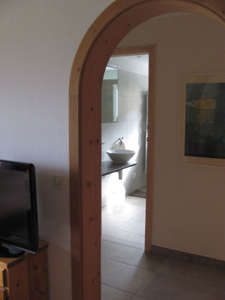 Eingangsbereich mit praktischen Einbauschränken für Garderobe und Putzmaterial. Gemütliche Küchenanlage mit Echtholzfronten, Wohnzimmer mit Ausgang zum grossen und überdachten Balkon mit sehr schönem Ausblick über das Tal. Warmluft-Cheminée für gemütliche Winterstimmung. Doppelzimmer, Bad mit Dusche und Glaswand sowie einem Fenster, separates WC mit Lavabo, im UG befindet sich ein eigener Kellerraum und eine Garagebox.