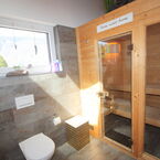 EG: Überdachter Eingangsbereich, Korridor mit Garderobeschränke, Wohnküche mit zusätzlichem Holzkochherd, Vorratsraum, Wohnzimmer mit Balkon, sehr grosszügiges Bad mit Wanne, Dusche mit Regenbrause und Temperaturmischer, Sauna mit Glastüren, Doppellavabo mit Einbauten, direkter Zugang ab Bad zu einem Ankleideraum, Wäscheabwurf.