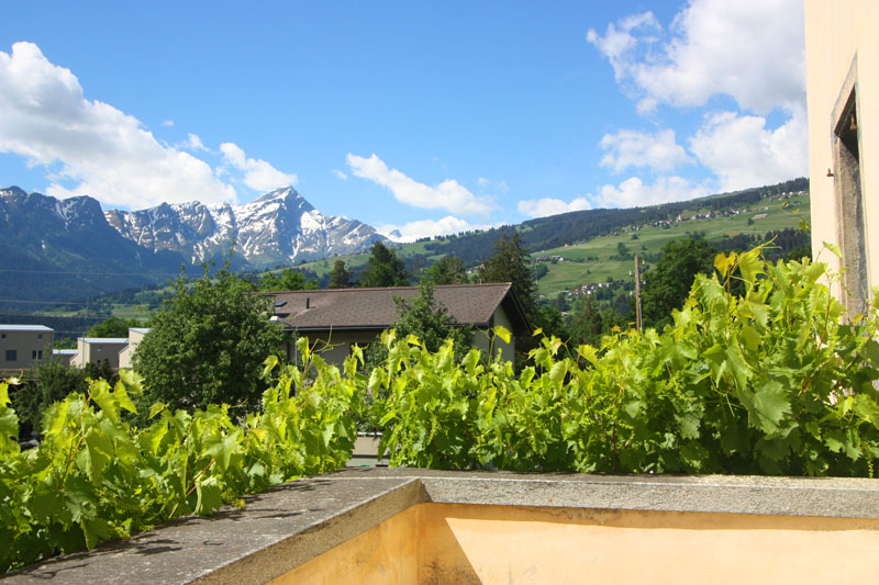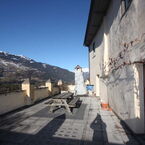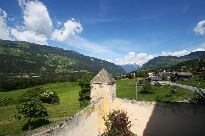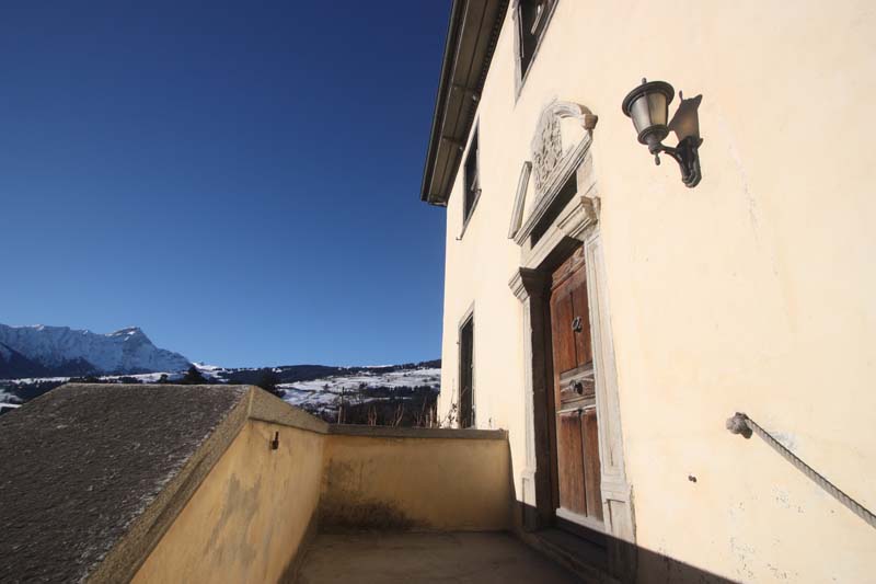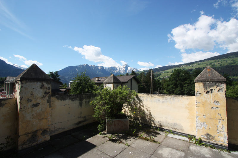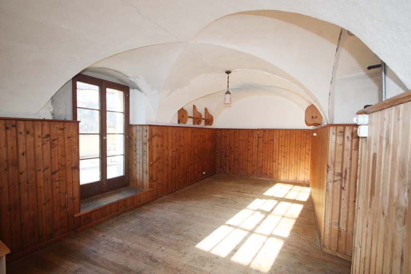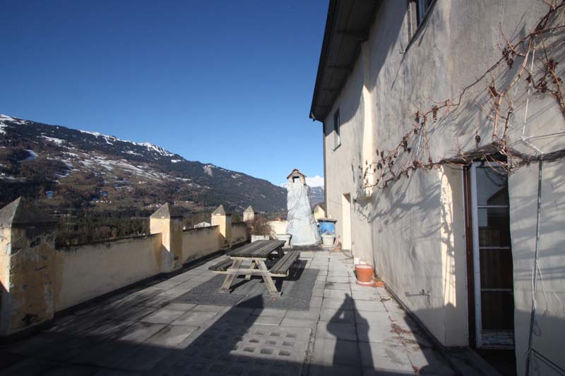 Treppenaufgang, Haupteingang mit Portal und Wappen, Kreuz-Gewölbe-Mittelkorridor, Wohn-Esszimmer mit Tavetscher-Steinofen und nebenliegender Gewölbe-Küche, Wohnraum mit Kreuz-Gewölbe und Anschluss Süd-West-Terrasse, Zimmer mit Ausgang zur Terrasse, Bad/WC/Lavabo/Fenster, Steintreppe UG/OG. Riesige Terrasse 62 m2 mit phantastischer Rundumsicht mit Berg- und Talpanorama.